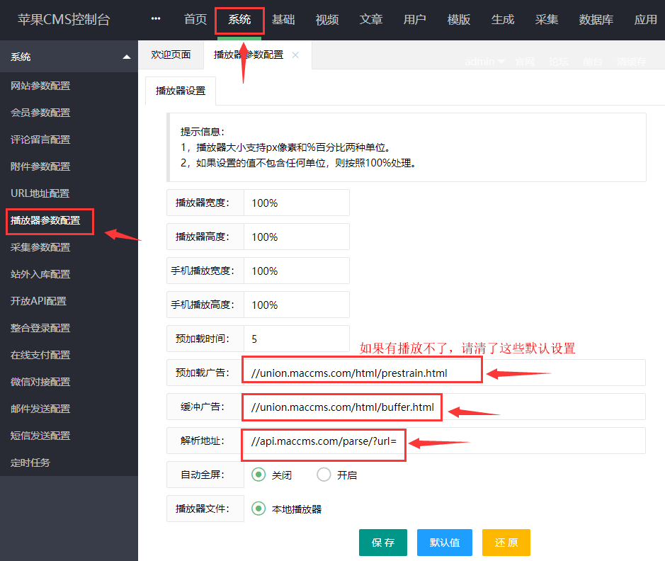 需要先再网站后台添加对应的播放器,才可以实现播放。下载文件解压后按下图操作【下载播放器文件】