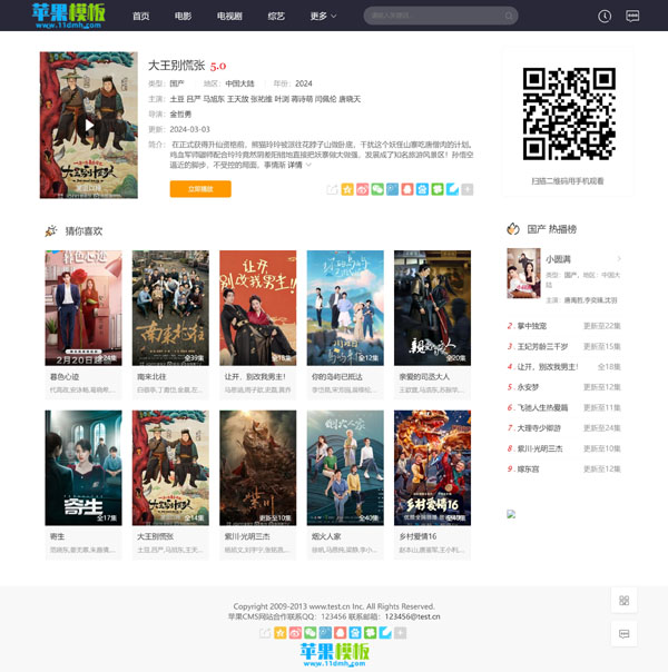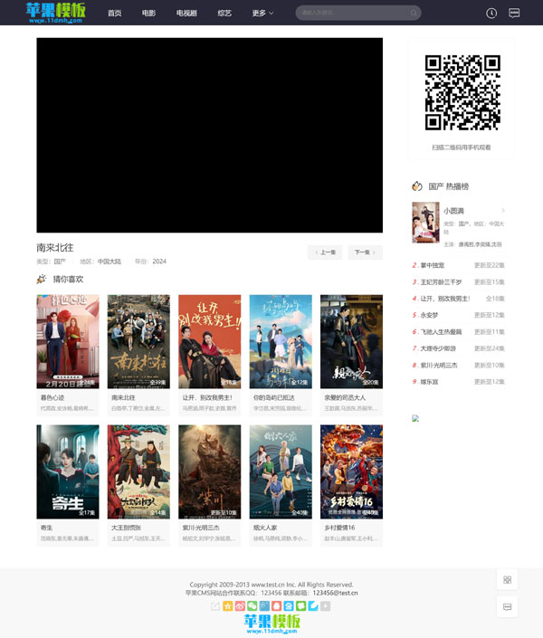 采用了目前主流的影视网站布局风格,既左侧内容详情,右侧排行榜的设计,并加入了次级导航栏,方便用户更快的查找,同时大幅优化了pc端代码,减少了无效代码,将更多的流量注入到wap移动端上面,更符合当前的站长实际需求。
